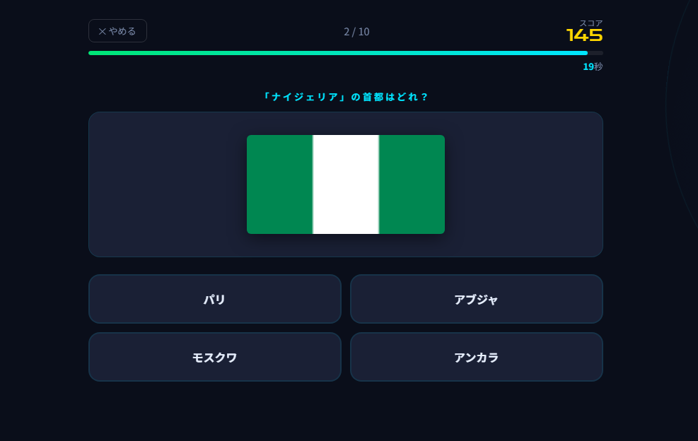 リンクはこちら→https://geoguessrtips.com/quiz/flags-capitals